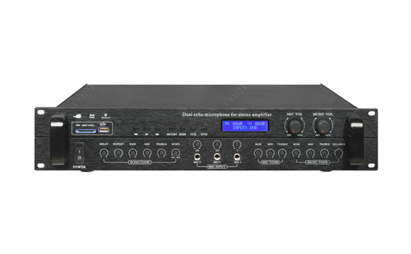 此係列產品是具有音箱處理功能的卡拉OK效果器,每部分功能都獨立可調。  用24Bit數據總線雙混響;  麥克風自帶反饋抑製;  MIC通道四路輸入,一路48V幻象電源支持電容麥輸入;  內置USB/SD接口,遠距離藍牙接收;  本機設有