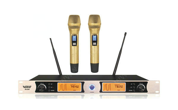 3)接收機和發射器具有距離調節控製鍵,適應更多的應用場合(主機後麵SQ調節,手持電池架上有H大功率、L小功率調整)