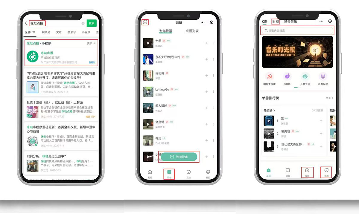 2、進入程序後,點擊設備,連接設備,即可掃二維碼連接自己的點歌機