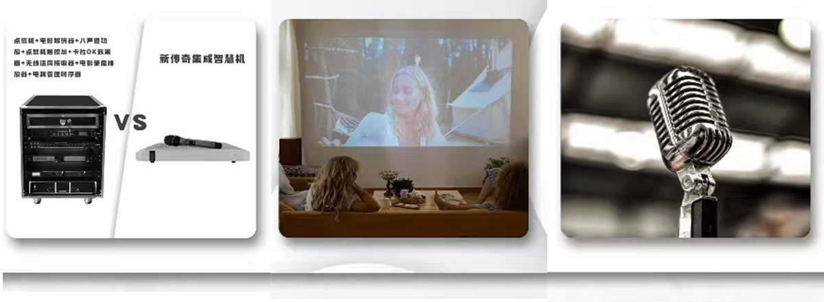 將電影係統,K歌係統,效果器,話筒管理係統,數字處理器,數字,功放電源係統,專用音箱設備等係統集成於一體的機器。